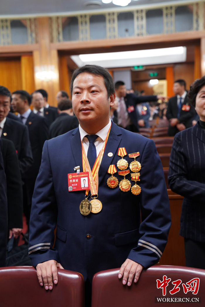 图为佩戴荣誉勋章的与会代表。中工网记者 王鑫摄