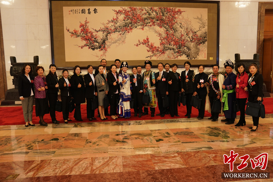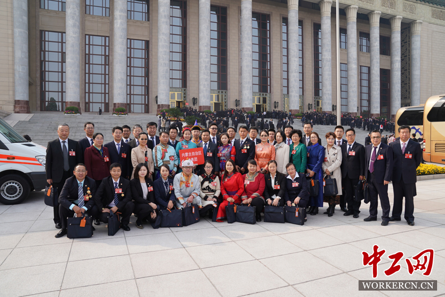 图为与会代表在人民大会堂内合影留念。中工网记者 王鑫摄