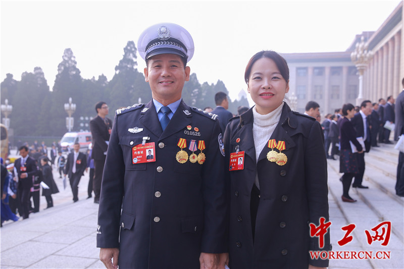 中国工会十七大代表蔡建家,海南省海口市公安局交通警察支队龙华大队七中队中队长,2014年获“全国五一劳动奖章”称号。中国工会十七大代表符攀,海南龙泉集团有限公司中餐厅经理(农民工),2012年获“全国五一劳动奖章”称号。中工网记者 田浩生摄