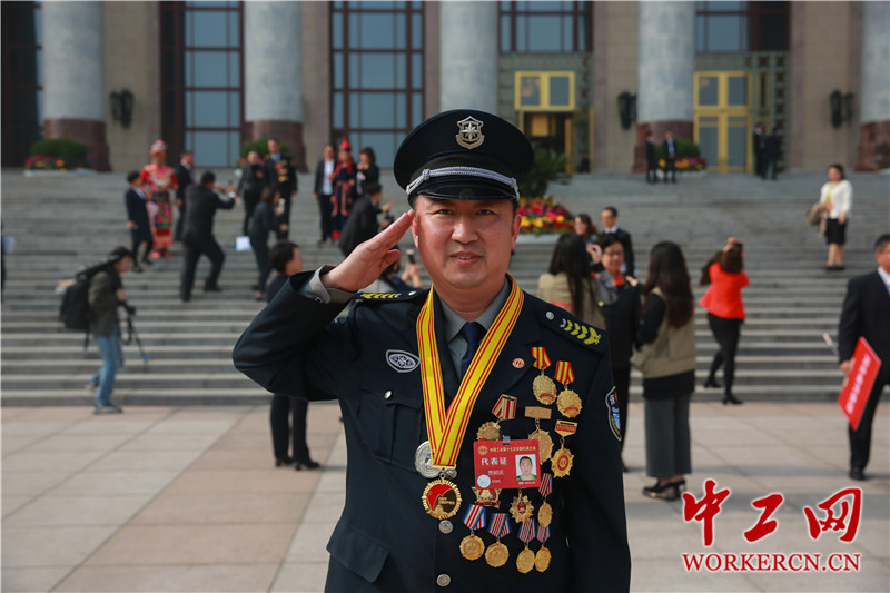 中国工会第十七次全国代表大会于10月22日在人民大会堂隆重召开,参会代表分别从京西宾馆、职工之家、铁道大厦、国二招、国谊宾馆、西直门宾馆六个工会十七大驻地前往人民大会堂参加会议。在人群中佩戴奖章的代表成为了工会十七大会议的一道靓丽风景线。中工网记者 田浩生摄