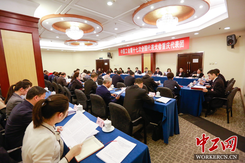 10月23日出席中国工会第十七次全国代表大会的重庆代表团召开小组会议,中华全国总工会保障部部长粟斌到重庆代表团,同代表们一起讨论审议《中国工会章程(修正案)》、财务工作报告、经费审查委员会报告。重庆市人大常委会副主任、党组成员,市总工会主席夏祖相主持会议,姚红、王平、贺莉、王萍等代表参加会议。