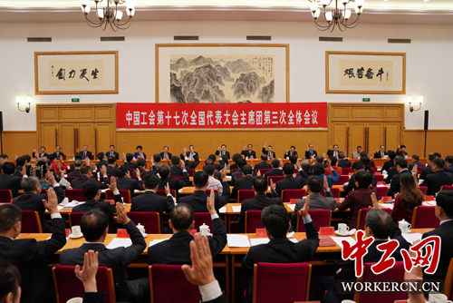 10月23日,中国工会第十七次全国代表大会主席团举行第三次全体会议。中工网记者 王鑫 摄