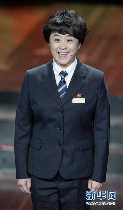 中国铁路哈尔滨局集团有限公司齐齐哈尔车辆段工长陈佳在“最美职工”发布仪式上(4月21日摄)。 新华社记者 才扬 摄