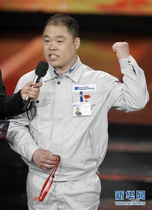 江苏省无锡微研股份有限公司高级技师陈亮在“最美职工”发布仪式上(4月21日摄)。 新华社记者 才扬 摄