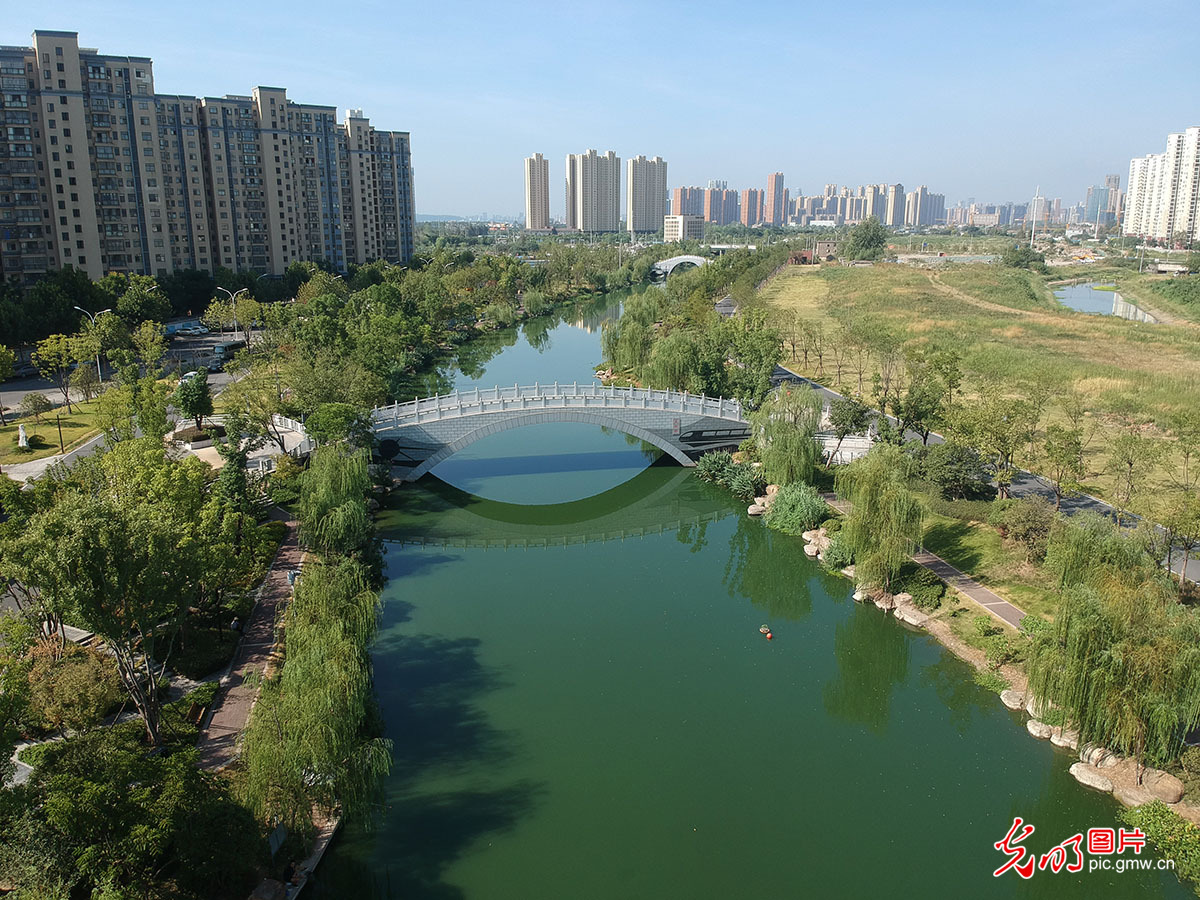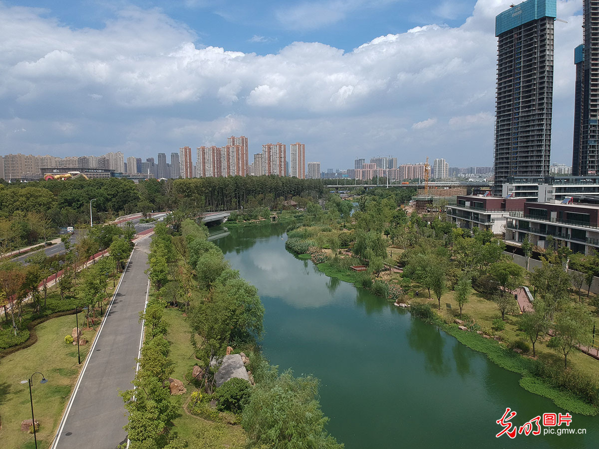 如今,漫步东湖港,昔日4.7公里长黑臭水体的东湖港,成为提升市民幸福指数的生态景观公园。水清岸绿、生物多样的水生态环境,让东湖港“颜值”大升级,真正实现了“生态为民、生态惠民、生态利民”,让人民群众对美好生活的梦想成真,更为“美丽湖北”和“生态大武汉”建设写下了浓墨重彩的一笔。图为2019年8月27日,治理后的东湖港水清柳绿,与周围城市环境相得益彰。(光明网记者 邵绪楠摄/光明图片)