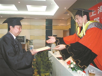 2002年,在上海第二工业大学,校长李进向李斌授予学士学位。