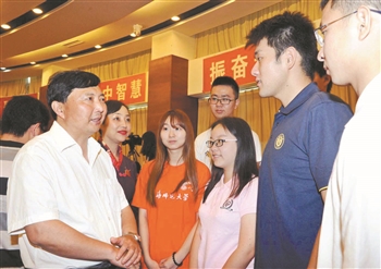 2012年,李斌在上海师范大学与大学生交流。
