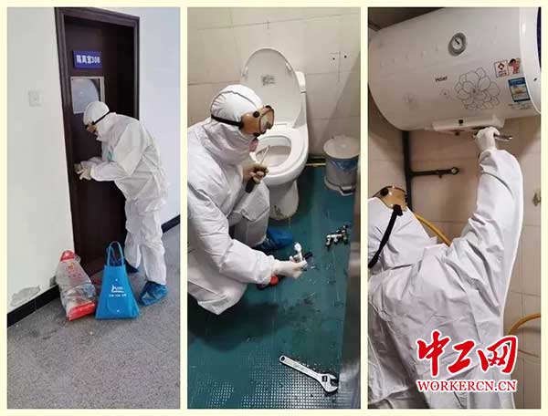 28日,隔离房里已经住进了疑似病人,而改造任务仍需完成。此时,因为担心被传染,有人退缩了。陈玉雨主动请战,穿好防护服、戴好护目镜,拿起维修工具,独自进入隔离区工作。防护服穿久了会出汗,出汗又会使防护镜里产生雾气,影响视线了就用手把护目镜往额头上推一下,继续修……就这样,陈玉雨在隔离房里修了2、3个钟头,总共为4间隔离房修好了热水器和水龙头。“南方冬天室内凉,修好了,病人就能用上热水了。”陈玉雨的心愿很朴实。