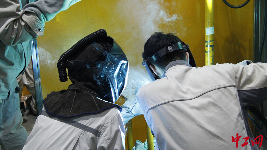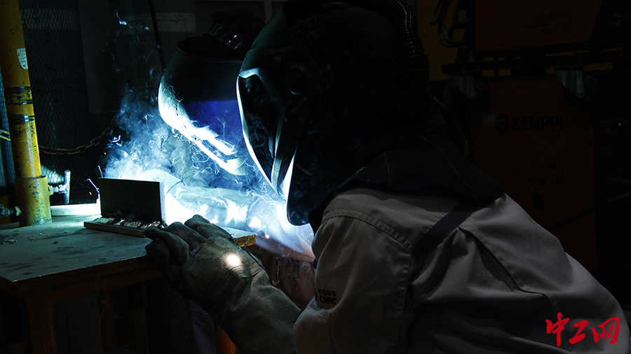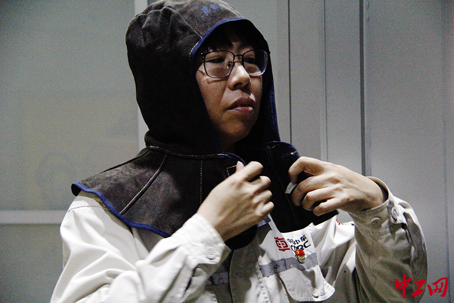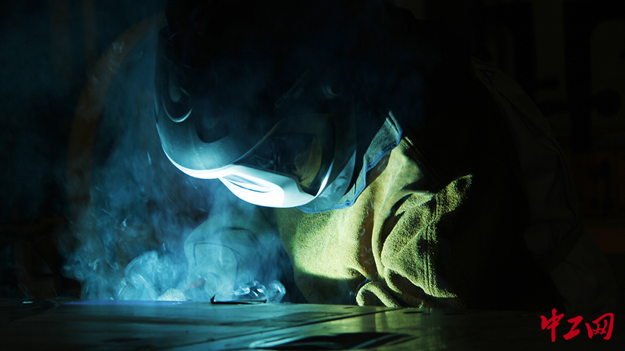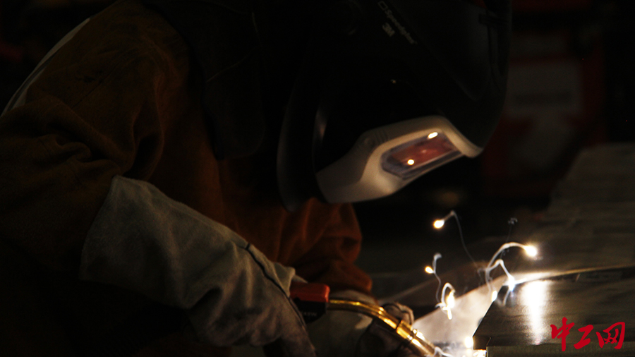 孙景南穿戴焊接防护设备 中工网记者 尹文卓 摄