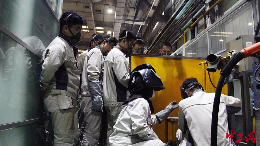 新职工在孙景南工作室围观其焊接指导 中工网记者 尹文卓 摄