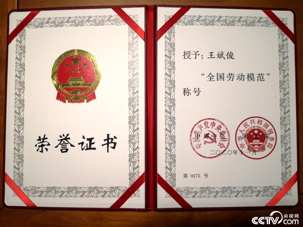 王斌俊的全国劳动模范证书。(部分图片由高阳煤矿提供)