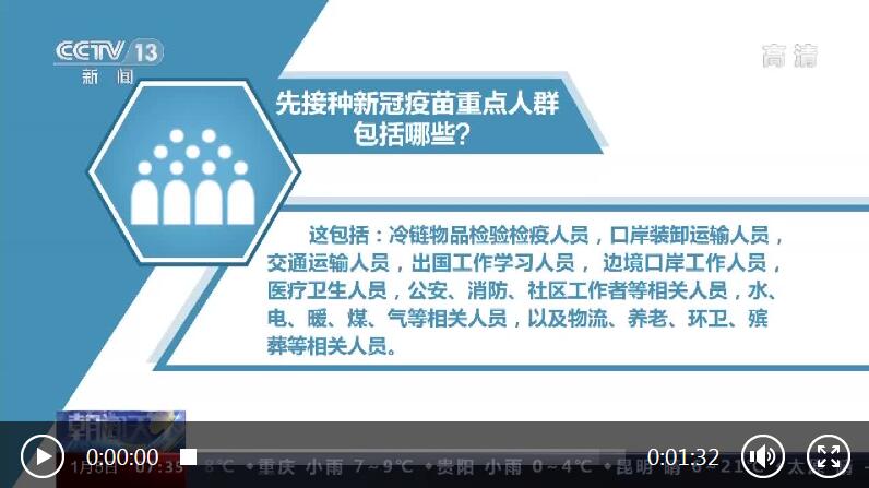 冷链物品检验检疫人员,口岸装卸运输人员,交通运输人员,出国工作学习人员, 边境口岸工作人员,医疗卫生人员,公安、消防、社区工作者等相关人员,水、电、暖、煤、气等相关人员,以及物流、养老、环卫、殡葬等相关人员。