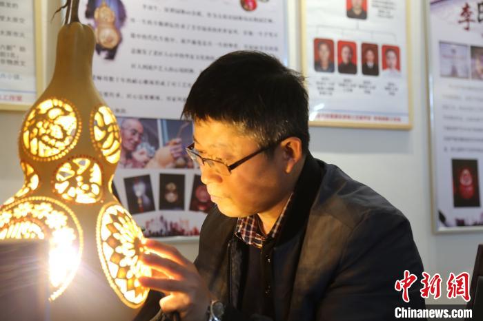 2021年新年伊始,在山西省太原市晋源区武家寨李琦创新工作室,新的一组葫芦灯“锦绣龙城”雕刻完成,灯光一照,光线从雕刻的花纹中投射出来,影影绰绰,别有韵味。