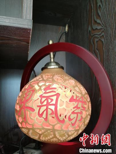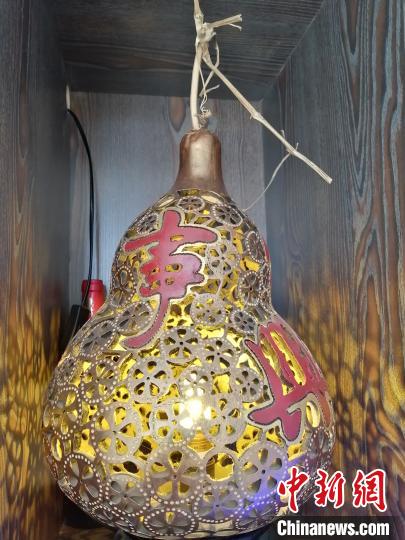 一个葫芦到雕刻成为精美的灯具,差不多要两周时间,图案复杂时间会更久一些。梁月仙供图