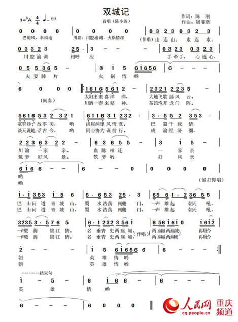 据了解,《双城记》由重庆市总工会一级巡视员陈刚作词,重庆市流行音乐协会主席、重庆师范大学音乐学院教授、硕士生导师周亚辉作曲,国家一级演员、四川籍全国著名歌唱家、歌剧表演艺术家陈小涛倾情演唱。