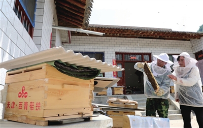 西青区投入帮扶资金为天水市麦积区利桥镇贫困户购置蜂箱、蜂群发展中蜂养殖,助力脱贫增收。