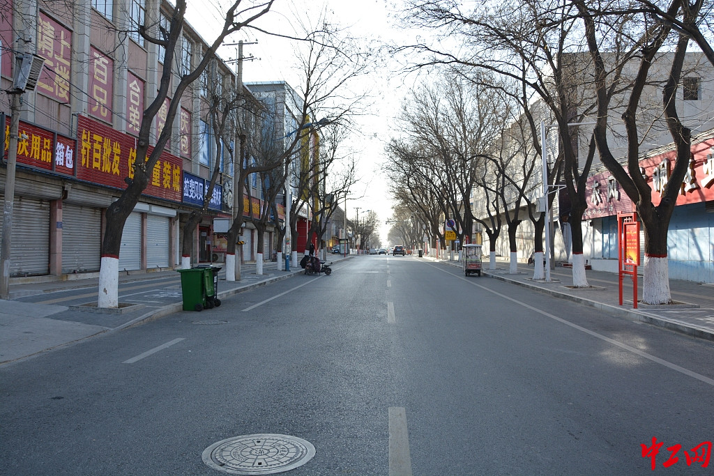 2021年1月13日,河北廊坊,三河市西关村附近道路上只有少量车辆通行,店铺多数关闭。