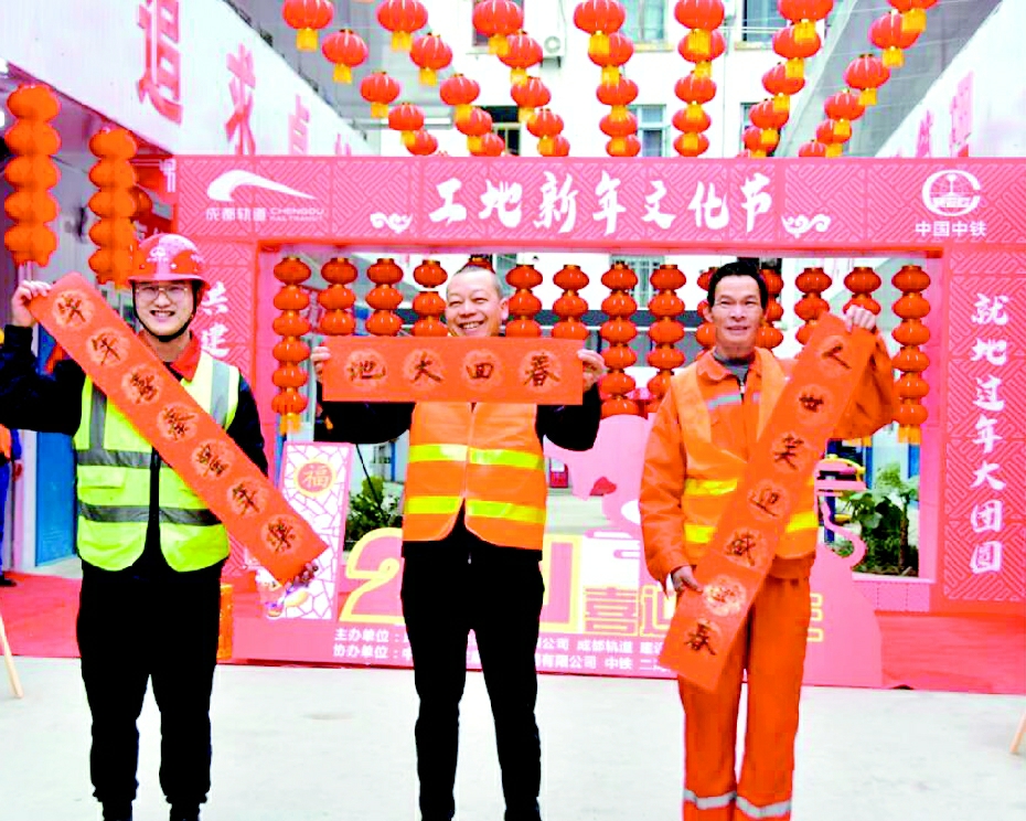 “老婆,中国中铁工地的年味很浓,今年咱响应号召,在成都就地过年,等疫情好转了我再回家。”1月20日上午,在中铁二局六公司成都地铁13号线“工地新年文化节”活动现场,来自内江的农民工肖勇拿出电话给妻子说,因为疫情,今年春节,他决定不回家过年,希望她照顾好自己8岁的儿子和父母,等疫情好转了再回家与家人团聚。
