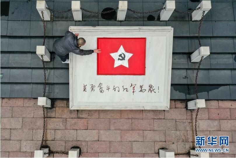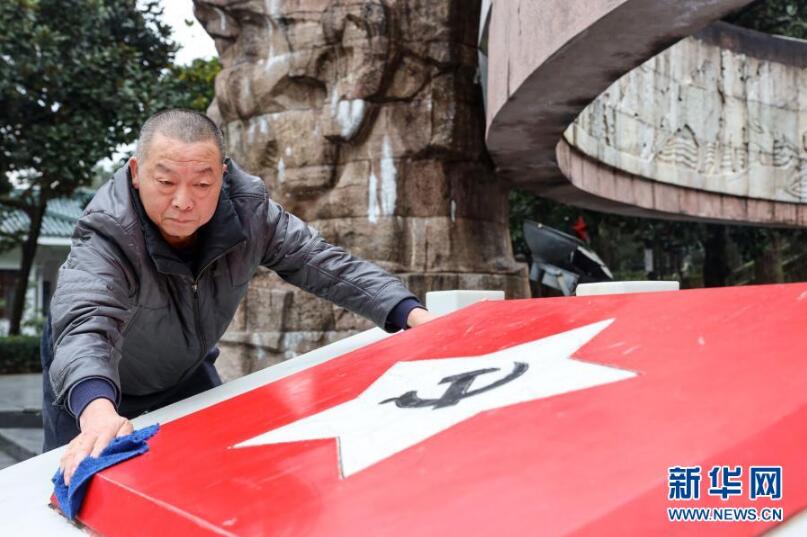 1月25日,杨爱民在遵义红军烈士陵园内擦拭雕塑。新华社记者 欧东衢 摄