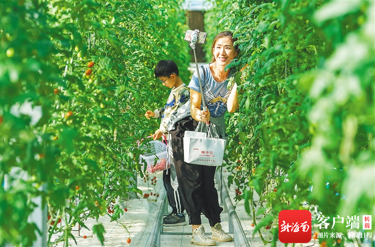 游客在三亚大茅远洋生态村庄园体验采摘番茄。记者 武威 摄