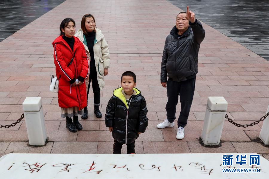 1月25日,杨爱民在遵义红军烈士陵园内为参观者宣讲红军纪念铜像的历史。新华社记者 欧东衢 摄