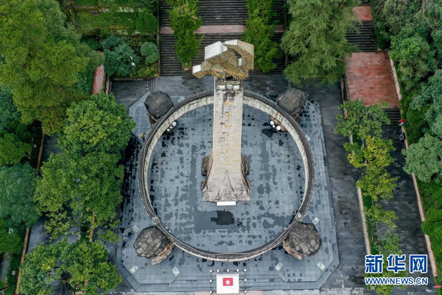 1月25日,杨爱民在遵义红军烈士陵园内巡查(无人机照片)。新华社记者 欧东衢 摄