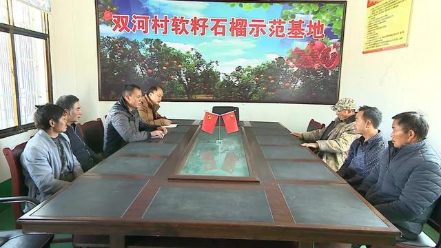 羊街镇双河村党支部副书记郑发磊说:“我们现在发展的思路主要是以石榴产业为主,蔬菜产业为辅,种植软籽石榴3000亩,形成了石榴园加石榴酒、石榴花酱和石榴茶的产业链。”
