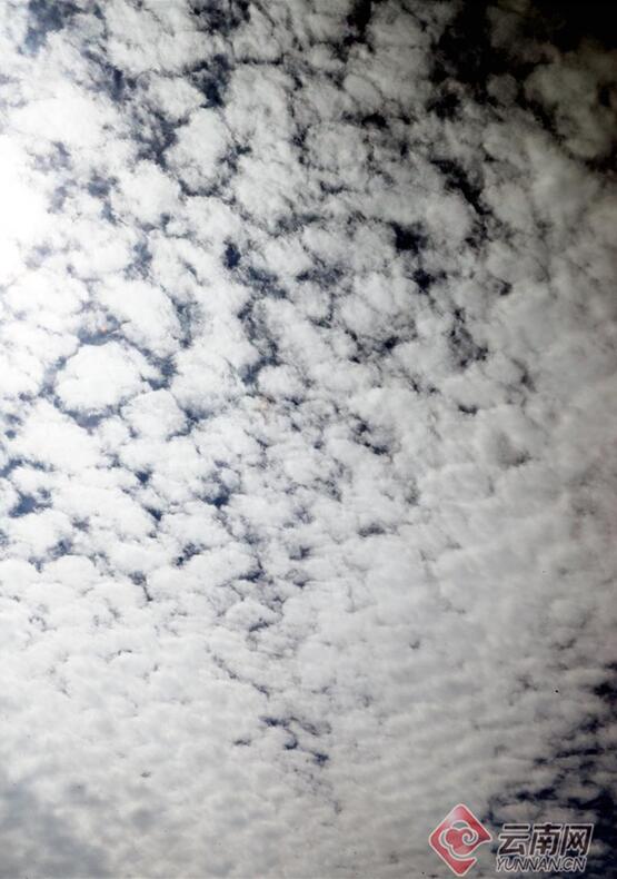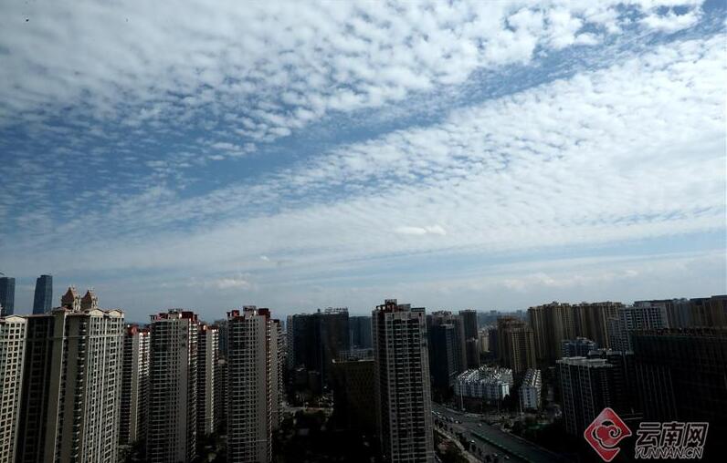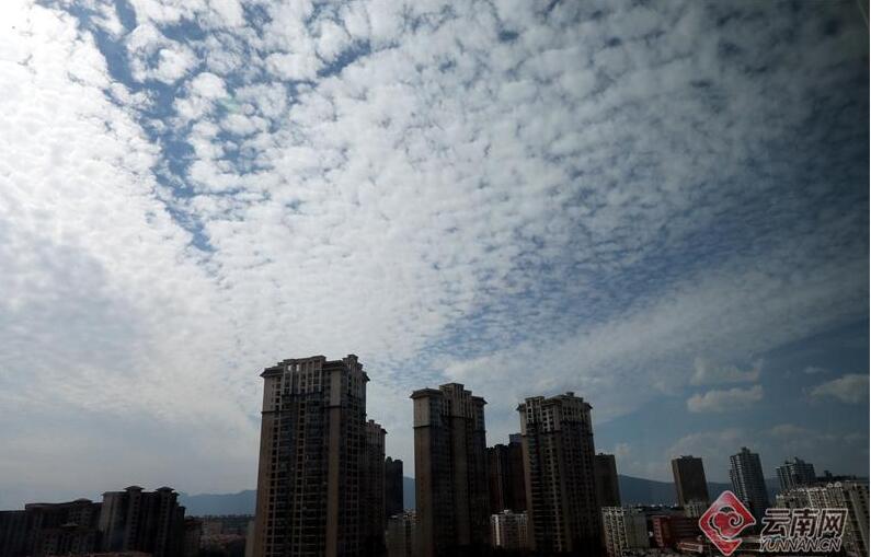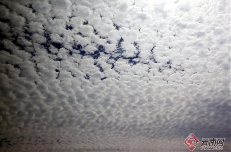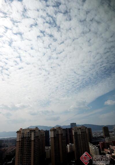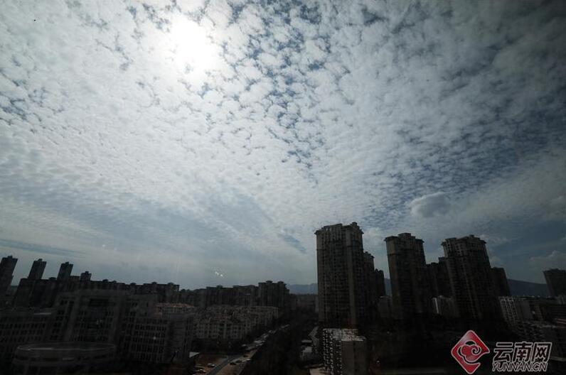 1月30日,春城昆明上空出现“鱼鳞云”景观,布满天空的奇特云景分外美丽。