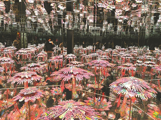 “没有足够的距离——跨界潮流艺术展”日前在上海明珠美术馆开幕,展期至5月5日。本次展览展出30多位艺术家共70多件艺术作品,横跨绘画、雕塑、影像、装置、潮玩等多个领域。现场展出的两件空间装置作品《不息》和《转运花园》相当吸睛,它们均出自广东90后纸艺艺术家陈粉丸。
