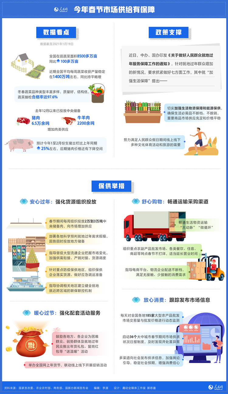 保障市场供应、加强储备调节、加强便民服务、强化市场监测……多个中央部门也联合发力,做好春节市场保供工作。