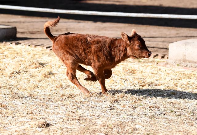 ↑这是国家肉牛改良中心饲养的秦川牛良种犊牛(2月5日摄)。