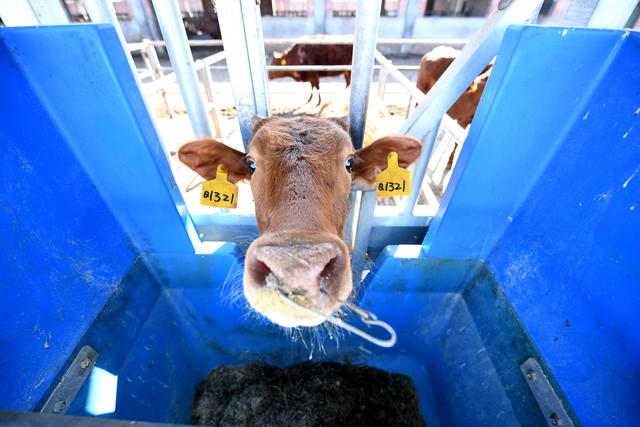 西北农林科技大学国家肉牛改良中心是国内唯一集肉牛遗传改良、繁育饲养及产业化示范等功能于一体的国家级科研平台,于2008年在“中国农科城”陕西杨凌成立。目前基地内饲养有400多头黄牛,均为经过基因选型的秦川牛肉用新品系种公牛、基础母牛以及良种犊牛。 多年来,国家肉牛改良中心通过对肉牛遗传资源的搜集、评价、保护与利用,以及肉牛遗传改良过程中共性关键技术的联合攻关,已完成多项具有国际水平的创新成果,为我国黄牛肉用改良、肉牛新品种(系)培育工作提供了技术支撑。 新华社记者 李一博 摄影报道