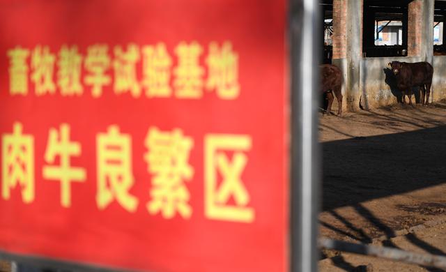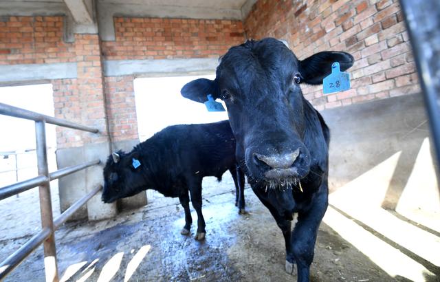 ↑这是国家肉牛改良中心饲养的日本和牛,主要用于秦川牛的改良杂交试验(2月5日摄)。
