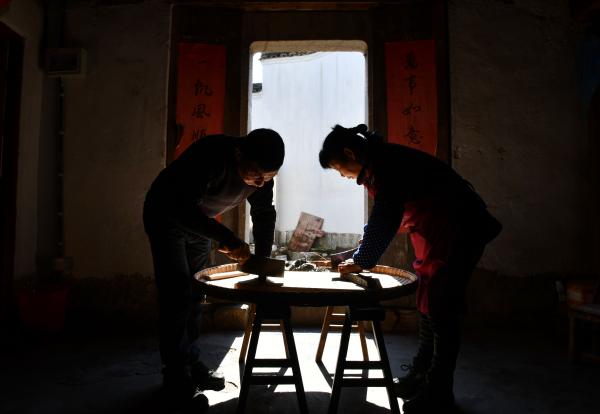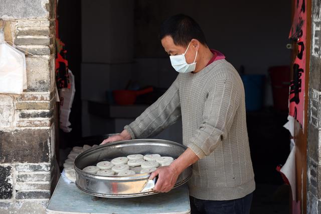 ↑2月6日,安徽省宣城市泾县查济村的村民端出刚做好的米粿。查济村位于安徽省宣城市泾县,是一个拥有千年历史的徽州古村。春节临近,村民们按传统习俗写春联,挂灯笼,制作米粿、年豆腐、芝麻糖等地方特色食品,古老的村庄里充满迎接新春的喜庆气氛。