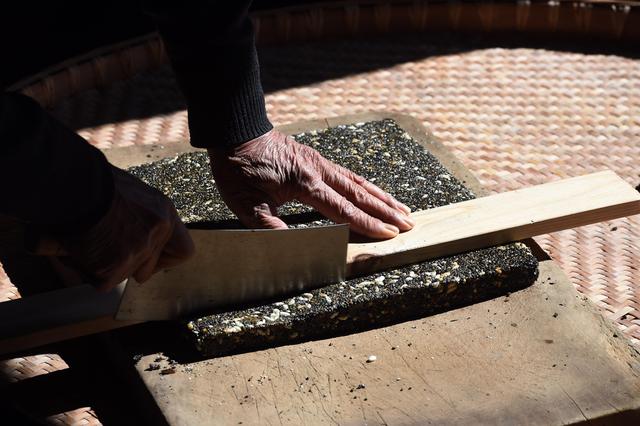 ↑2月6日,安徽省宣城市泾县查济村的村民在家中制作芝麻糖。