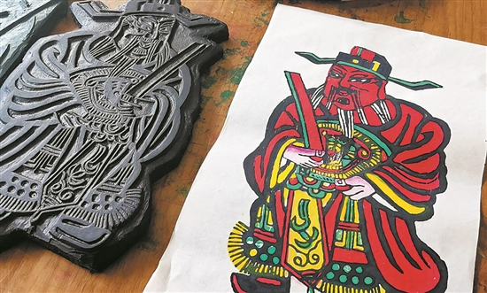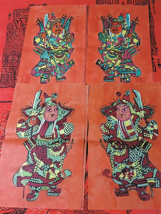 佛山木版年画以“写色描金”、色彩浓艳为特点,神像画占很大比例