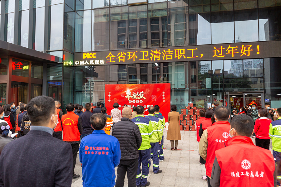 福建省环卫职工年夜饭爱心派送活动启动仪式现场。(工人日报-中工网记者 李润钊)