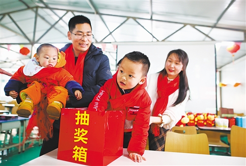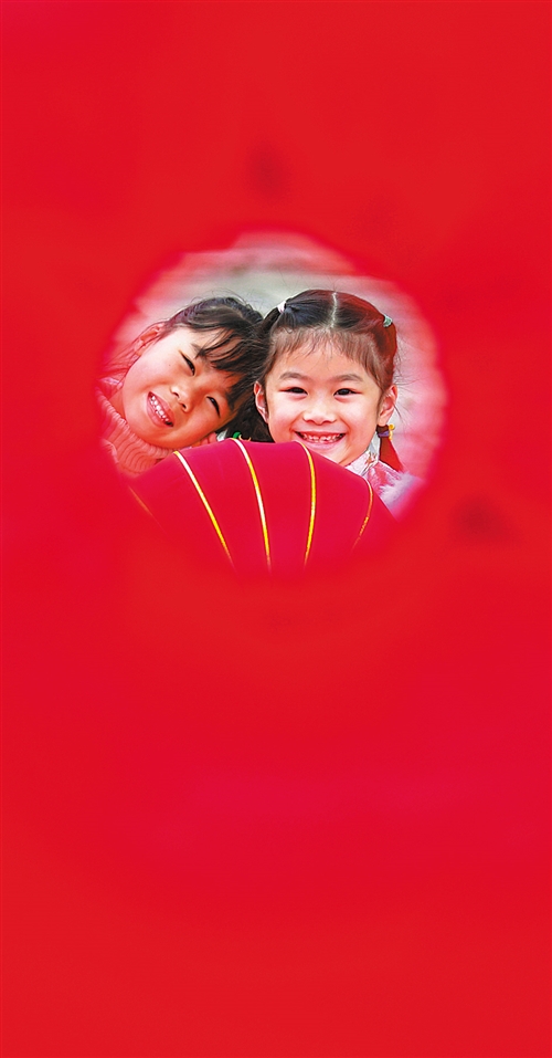 2月12日,浙江省湖州市南浔区和孚景区,孩子们开心地乐享新春。陆志鹏摄
