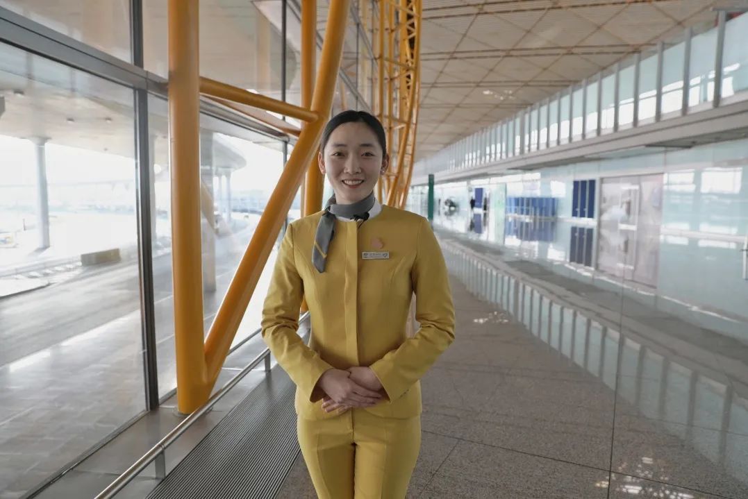 这身金黄色制服仿佛自带吸引力,迅速吸引来不少“问题旅客”。“逾重行李在哪里缴费?”“烤鸭可不可以带上飞机?”“麦当劳在哪?”“从哪里下楼?”“去哪里可以喝到热水”……这些问题完全不按套路出牌,我不仅不能立刻解答,还时不时地挡住旅客去路,滑稽得像热锅上的蚂蚁。