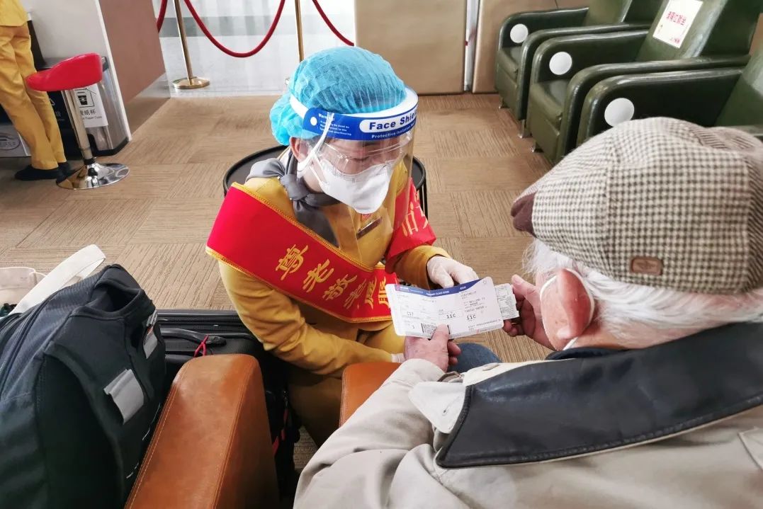 🔺 记者为老年旅客提供爱心陪伴服务。