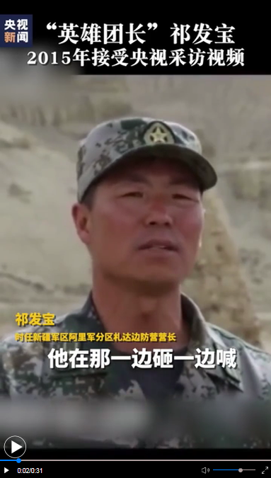 2020年6月,外军越线搭设帐篷,团长祁发宝本着诚意,仅带几名官兵交涉,却遭对方用钢管、棍棒、石块攻击。祁发宝头部遭重创。包扎伤口时,“他一把扯掉头上的绷带,还想起身往前冲”。这样的铁汉,也曾因战友受伤哽咽流泪。