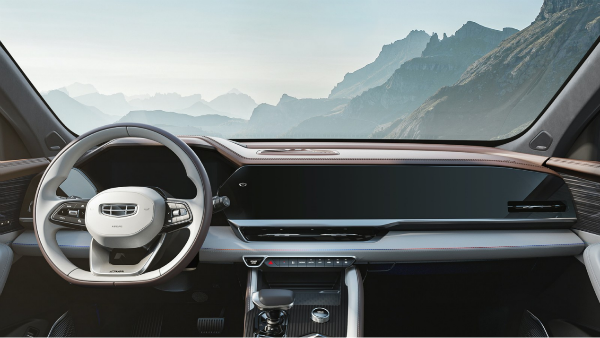 从内饰官图来看,星越L在设计上采用了全新设计理念与豪华科技配置,整体风格偏简约大气风,又融合了东方审美元素。中控台采用的是双拼色设计,相比霸气的外观多了一分韵味,整齐的缝线工艺与细腻的材质用料尽显工匠精神,使得座舱自带质感与豪华感不说,科技时尚中更见温馨舒适。而横贯整个中控台的超大三连屏,将仪表盘、中控屏、副驾驶娱乐屏实现一体化设计,加上三幅式运动方向盘,线条感突出,科技感爆棚。