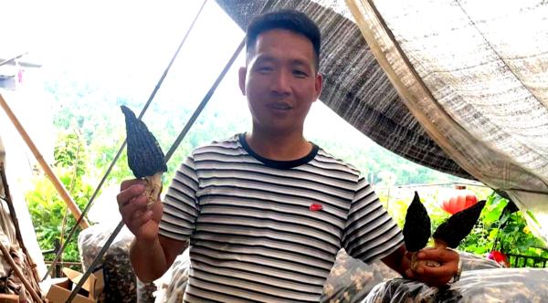 杨枝丰像淘到了“宝贝”一样,手举着几棵羊肚菌面对镜头,赞不绝口:“我在全国各地采购羊肚菌近20年了,像这样的极品羊肚菌,营养价值优于其他形态的羊肚菌。你们三兄弟不简单呀!很快在业内就要‘菌’临天下喽!”