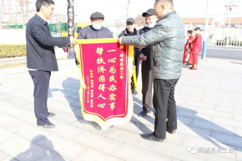 中工网讯 2月20日上午,山东省临沂市某公司离职员工杜某等4人将一面印有“一心为民办实事,帮扶济困得人心”的锦旗送至郯城县职工服务中心,对中心工作人员的真心服务及工会法律服务律师的尽力维权表示衷心地感谢。