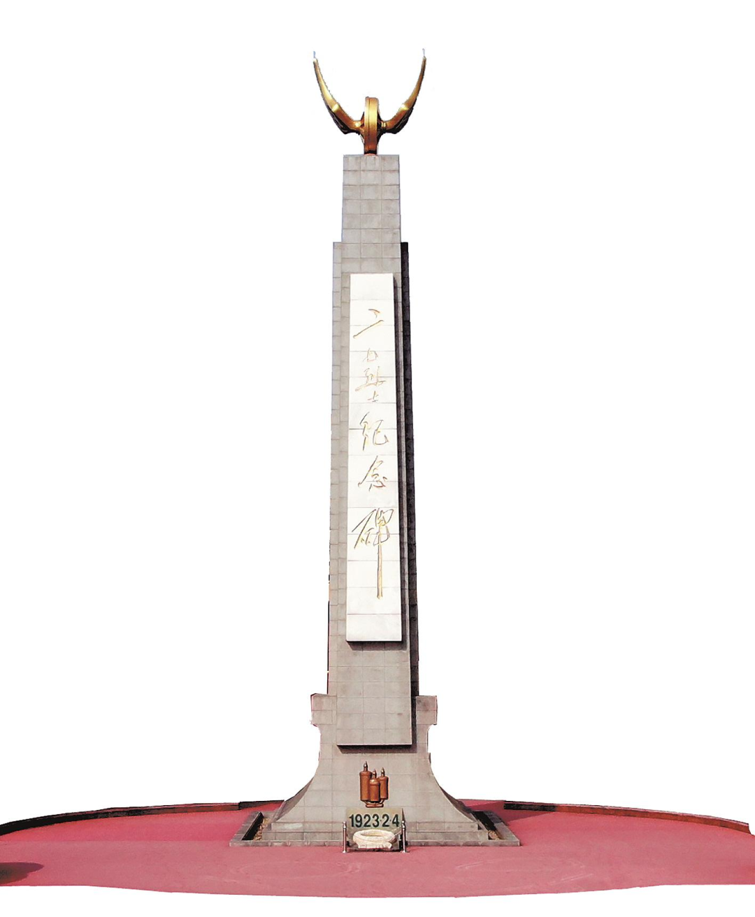 1958年底,纪念碑落成。毛泽东第二次题写的碑名“二七烈士纪念碑”七个大字镌刻在碑身正面的汉白玉上。