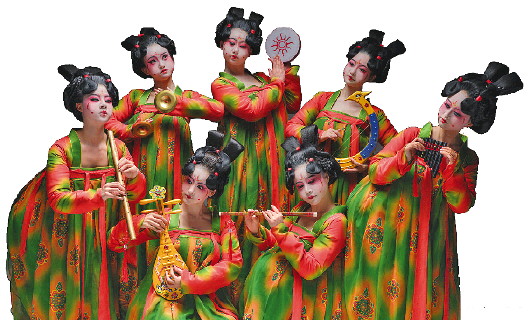 前段时间河南春晚《唐宫夜宴》火出圈,节目将歌舞放进了博物馆场景,以夜宴的乐师们为主角,展示了唐朝少女们从准备、整理妆容到夜宴演奏的过程。节目借鉴了唐代绘画、陶俑中宫女的发式、妆容与服饰,而其中最引人注目的就是舞蹈演员们的着装,“红配绿”的搭配不仅成功提升了舞台的视觉效果,更映射出中国传统的美学趣味。