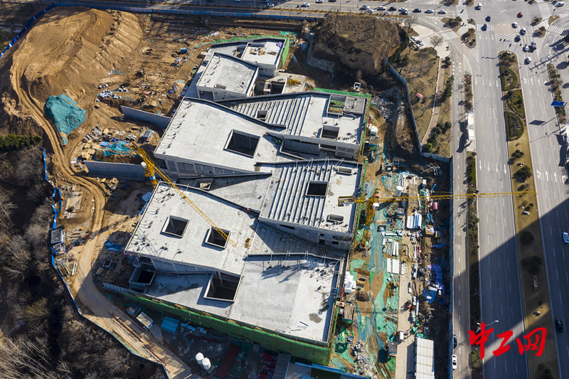 2021年3月3日,河南三门峡,在庙底沟博物馆工程建设工地,工人们正在加紧施工。该项目包含博物馆、仰韶文化国际研究中心、后土文化阵列馆等。目前,博物馆主体工程已完工,外幕墙及室内陈列布展正在施工,预计9月份对外开放。届时将为游客提供一个了解三门峡悠久历史灿烂文化的窗口。