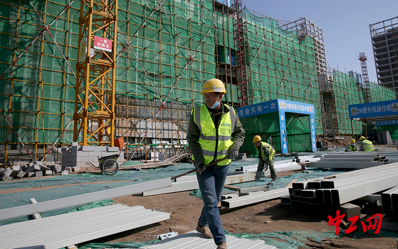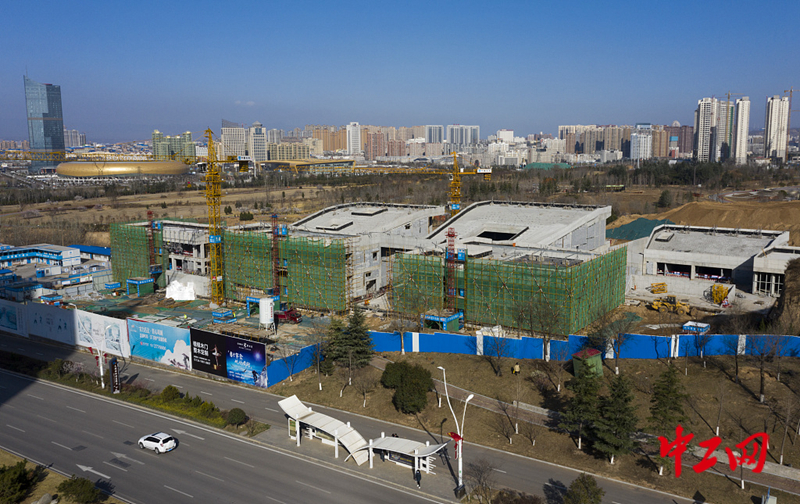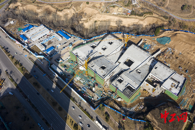 2021年3月3日,河南三门峡,在庙底沟博物馆工程建设工地,工人们正在加紧施工。