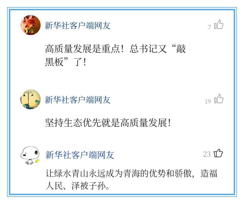 以“绿水青山就是金山银山”引领绿色发展,以高品质生活为落脚点推动高质量发展。习近平总书记的谆谆教诲,代表了广大网友的心声。