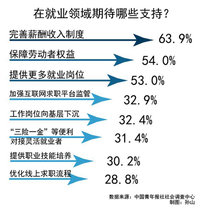 调查中,31.4%的受访者建议“三险一金”等便利对接灵活就业者,28.9%的受访者期待实施高校毕业生就业创业促进计划和基层成长计划。